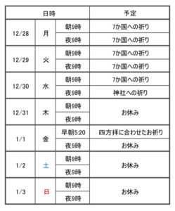 年末年始の開催予定につきましては、現在のところ以下のように計画しております。
