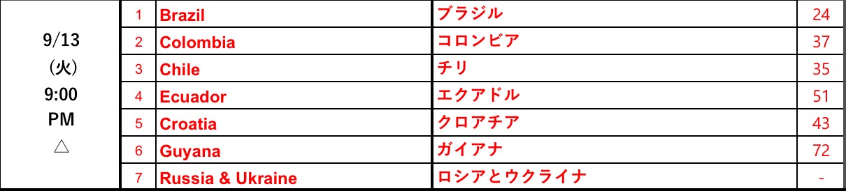 HOME > メルマガ > メルマガ [ZoomLetter:01385] 今夜の国の変更 2022/09/13(火) 国旗掲揚の皆さまへ いつもお世話になっております。 今夜の国が一部変更になります。 確認をお願いします。 無限なる感謝 斉藤雅晴